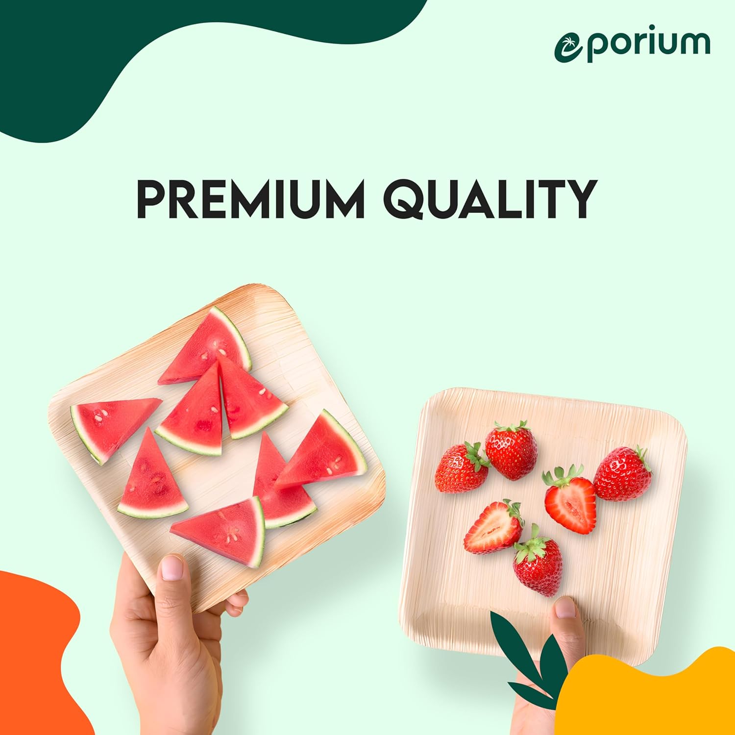 Square Palm Leaf Plates | 8 Inch | Heavy-Duty, Microwave-Safe, 100% Compostable Dinnerware